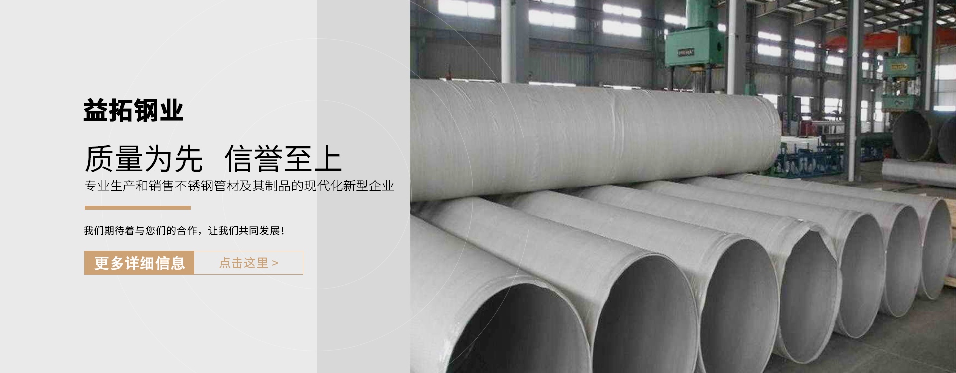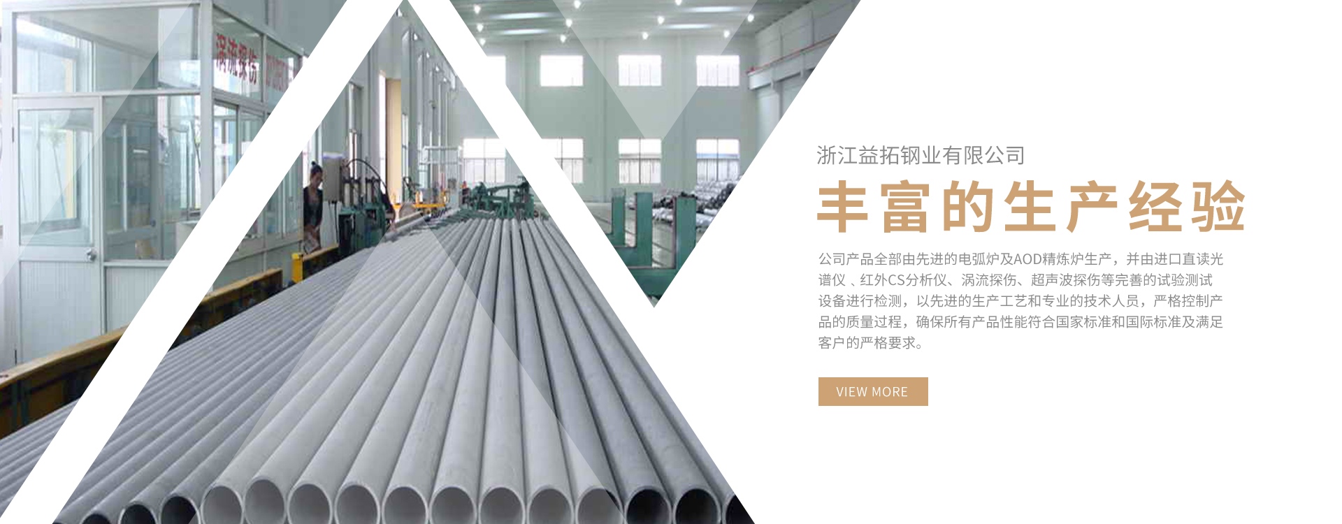 浙江益拓鋼業(yè)有限公司位于中國(guó)不銹鋼管的生產(chǎn)基地-浙江溫州,是一家通過了國(guó)際質(zhì)量管理體系ISO9001-2000認(rèn)證,專業(yè)生產(chǎn)和銷售不銹鋼管材及其制品的現(xiàn)代化新型企業(yè)。公司產(chǎn)品全部由先進(jìn)的電弧爐及AOD精煉爐生產(chǎn),并由進(jìn)口直讀光譜儀﹑紅外CS分析儀、渦流探傷、超聲波探傷等完善的試驗(yàn)測(cè)試設(shè)備進(jìn)行檢測(cè),以先進(jìn)的生產(chǎn)工藝和專業(yè)的技術(shù)人員,嚴(yán)格控制產(chǎn)品的質(zhì)量過程,確保所有產(chǎn)品性能符合國(guó)家標(biāo)準(zhǔn)和國(guó)際標(biāo)準(zhǔn)及滿足客戶的嚴(yán)格要求。